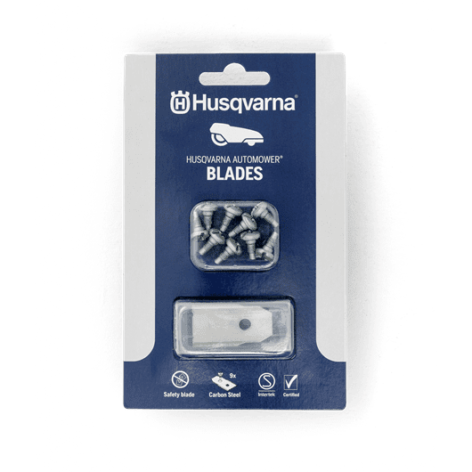Original Husqvarna Sicherheitsmesser aus Carbonstahl vereinen eine besonders hohe Festigkeit und Schärfe über einen langen Zeitraum. Entspricht den Sicherheitsnormen für Roboter-Rasenmäher IEC 60335-2-107.
